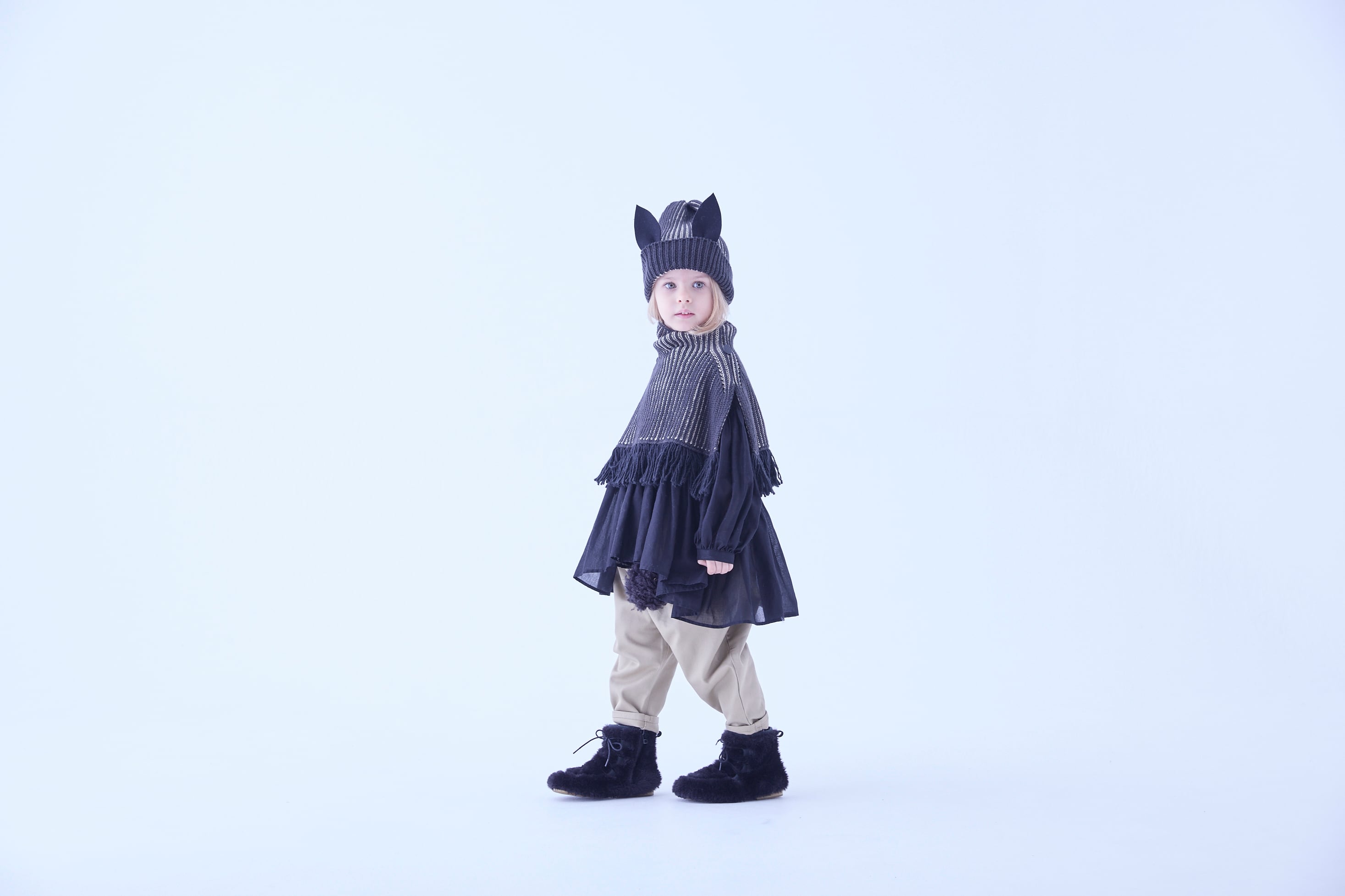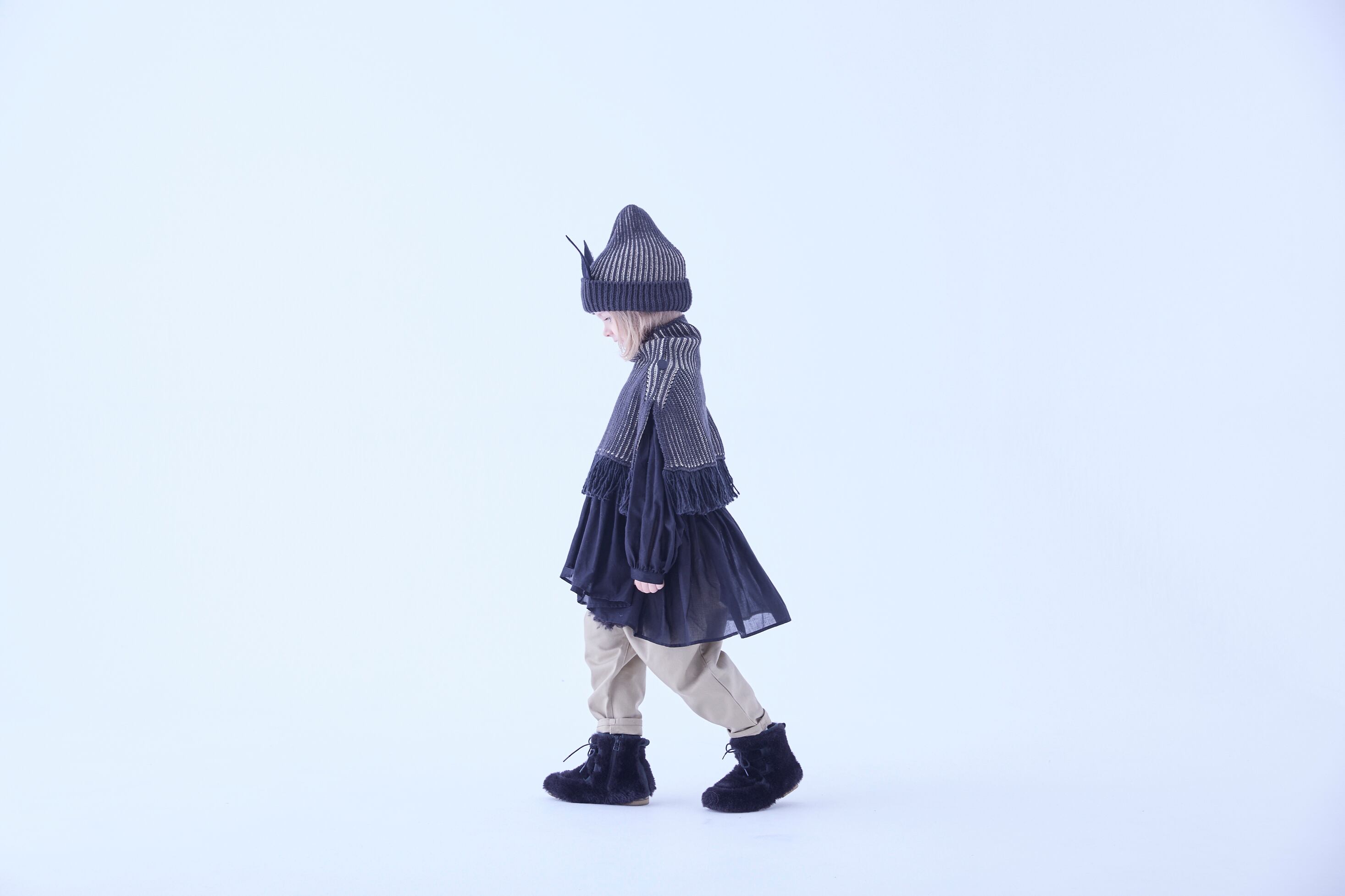 程よい中肉な厚みで、ベビーはマントのように、また、コートの中でネックウオーマーのようにも使えます。
