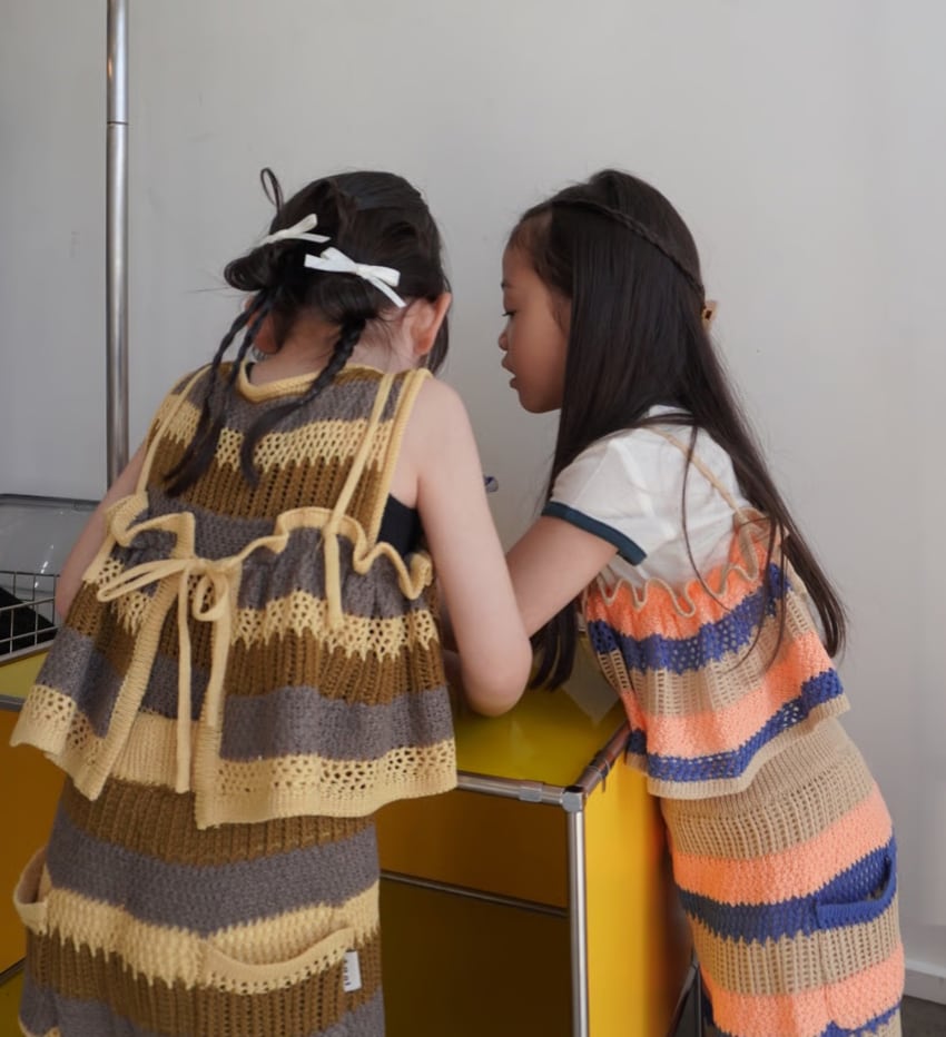 ビスチェ、腰に巻いてニットエプロンに、つけ襟としても♡