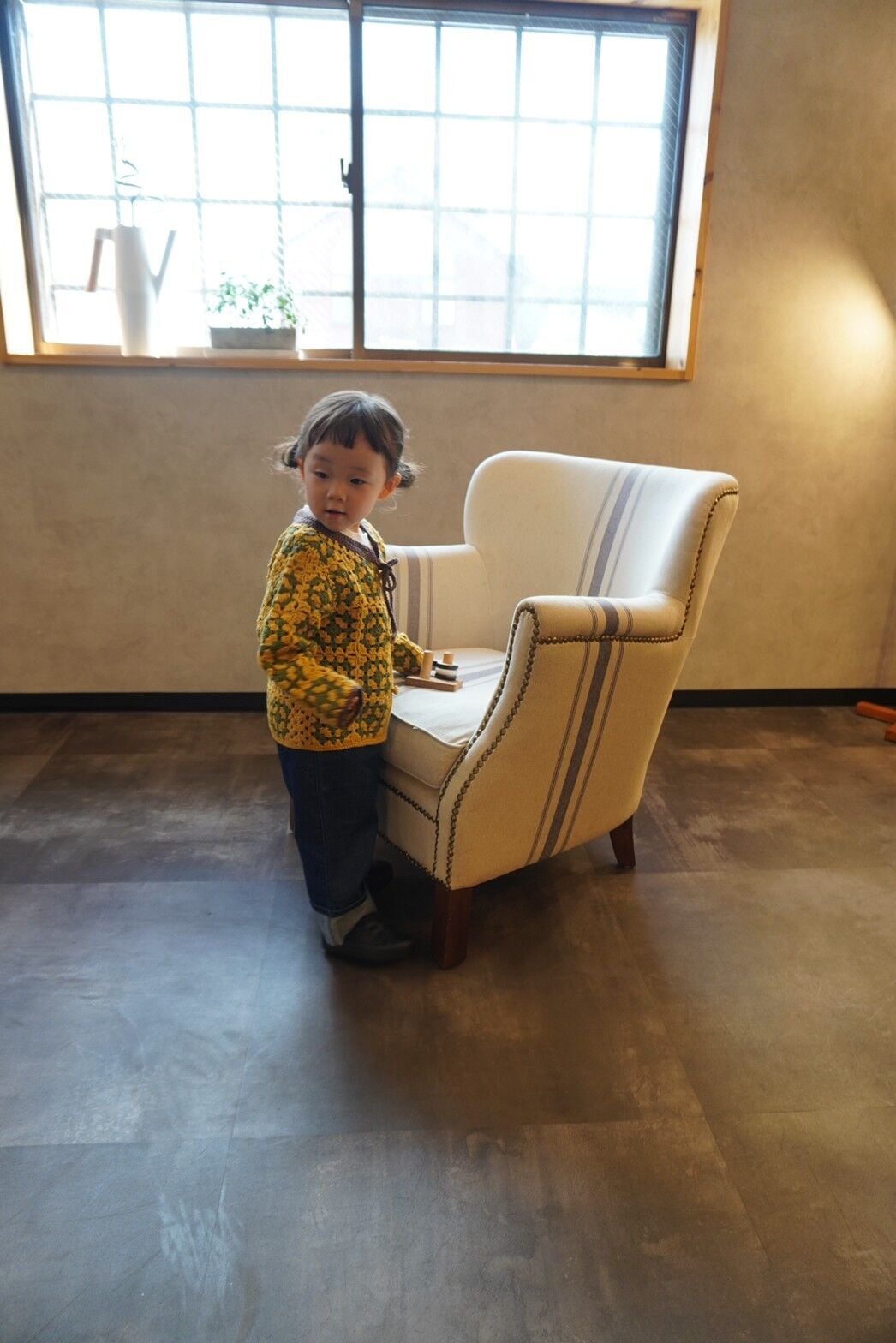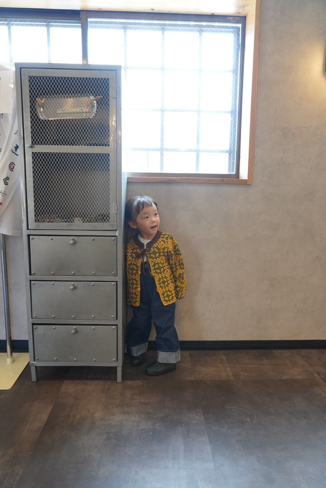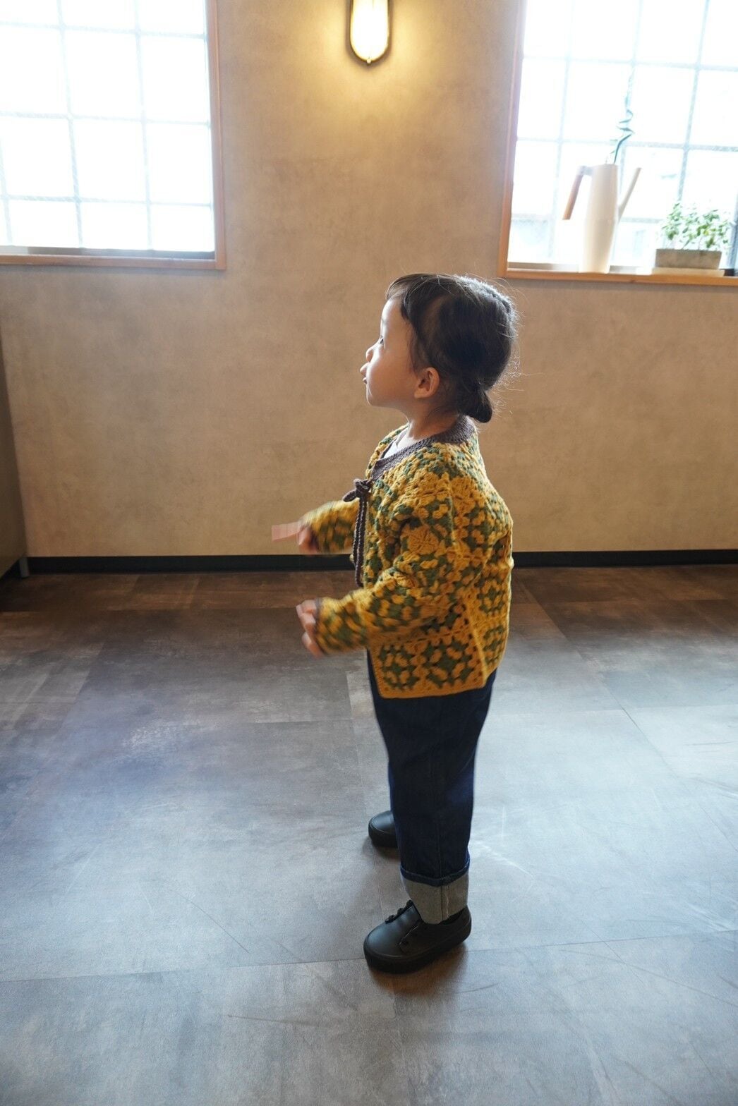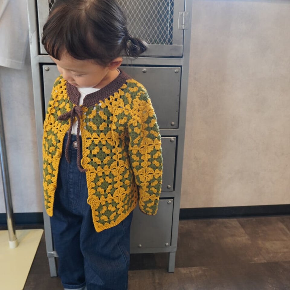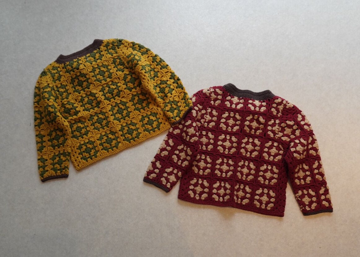 手編みのクロシェ編みニットカーディガンです