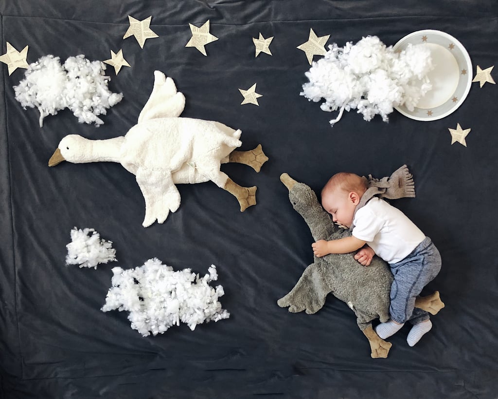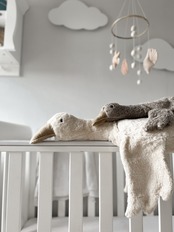 内側には取り外し可能な綿のピローが入っており、大きなぬいぐるみにはオーガニックのスペルト小麦の殻、小さなぬいぐるみにはぶどうの種もしくはさくらんぼの種が詰められています。